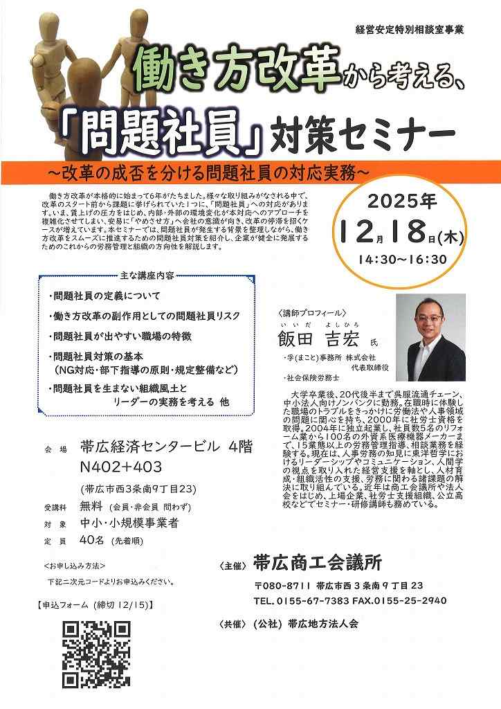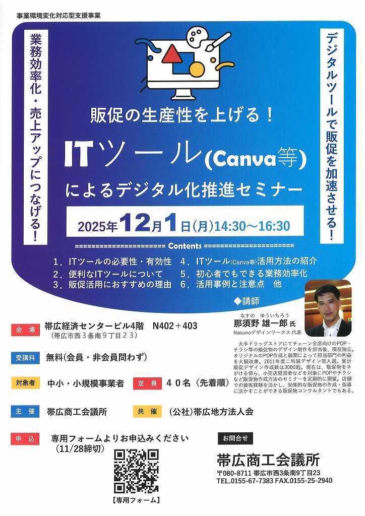 帯広商工会議所主催セミナ―のご案内(R7.10.17更新)